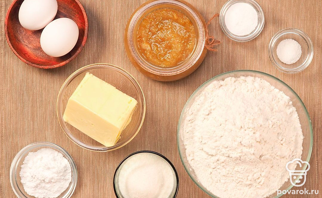 Пошаговый рецепт пирога с джемом в духовке очень простой. Джем можно добавить любой или приготовить его самостоятельно. Песочное тесто при выпечке может крошиться. При температуре выше +25 градусов масло в тесте размягчается и может отделиться от остальных продуктов. Чтобы исправить такое тесто, нужно его хорошо охладить, а сливочное масло класть уже теплым и мягким. Тогда пирог получится вкусным, и легкое песочное тесто оттенит насыщенный вкус джема.