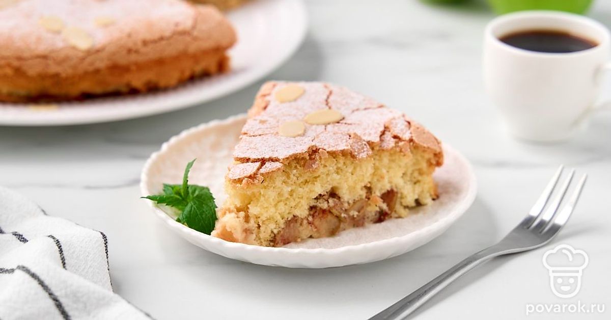 Воздушное рассыпчатое тесто с тонкой хрустящей корочкой снаружи и мягкими запеченными яблоками внутри — такой получится классическая шарлотка из муки, сахара и яиц. Для этого количества теста понадобится примерно 0,5 кг целых яблок, вес которых немного уменьшится после очистки. Так как бисквит получается очень сладким, яблоки лучше брать кисловатые, например, зеленые или антоновку. По желанию очистите яблоки от кожуры, так они будут мягче и слаще после выпечки.