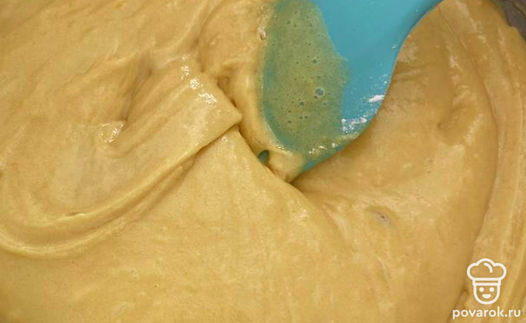 Тесто вымешиваем не миксером, а лопаткой до однородности.