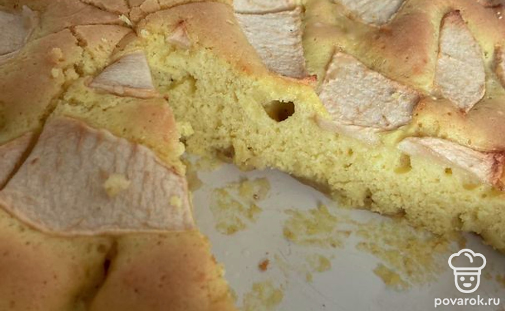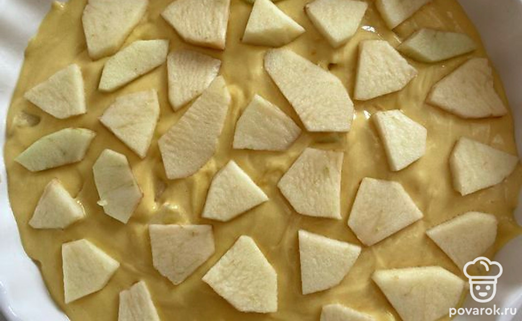 Чтобы пирог был более сочным яблоки лучше класть и на дно формы и сверху.