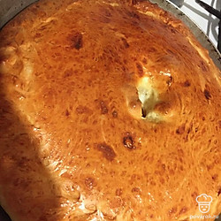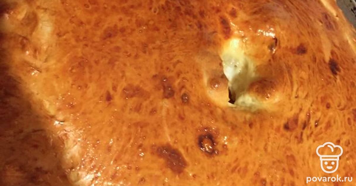 Чтобы было ещё вкуснее, можно взбить яичко и сверху помазать наш пирог кистью.
