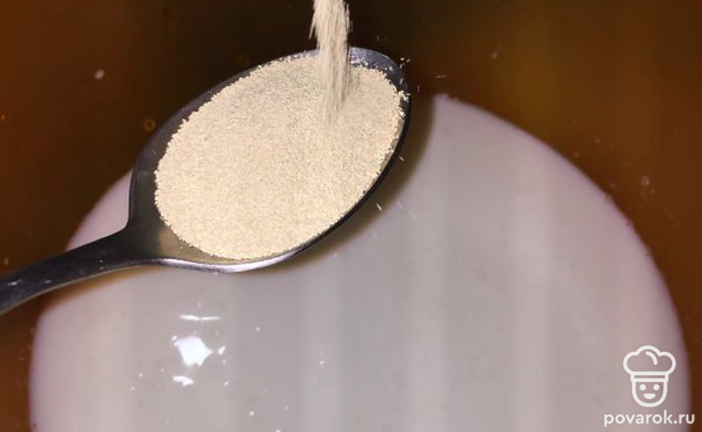 В блюдце наливаем молоко, больше чем половину пачки, добавляем туда же дрожжи.