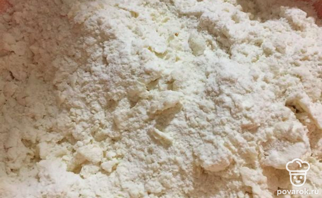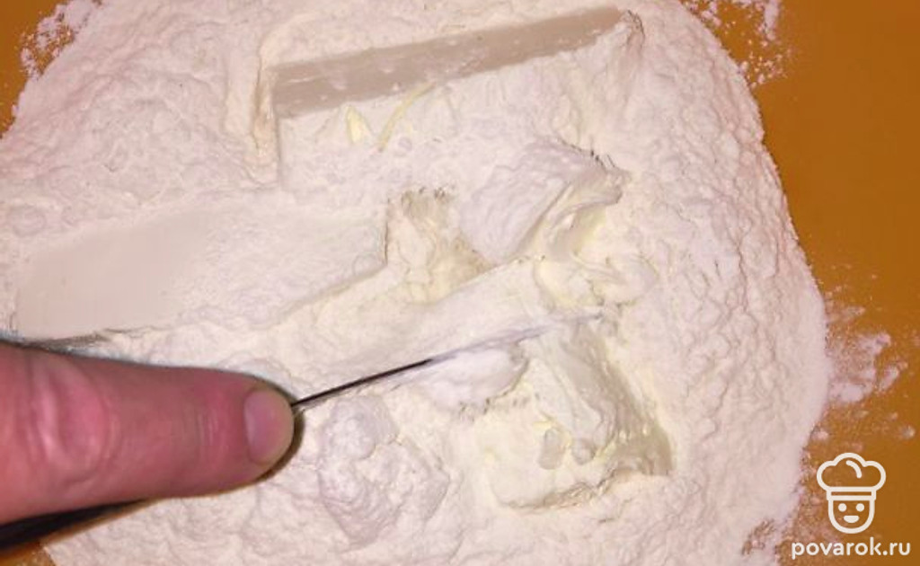 В отдельной посуде, обязательно в отдельной, смешиваем муку и сливочное масло.