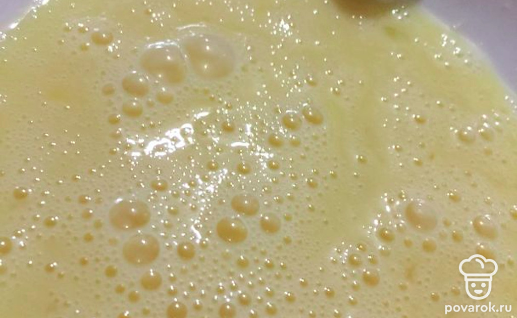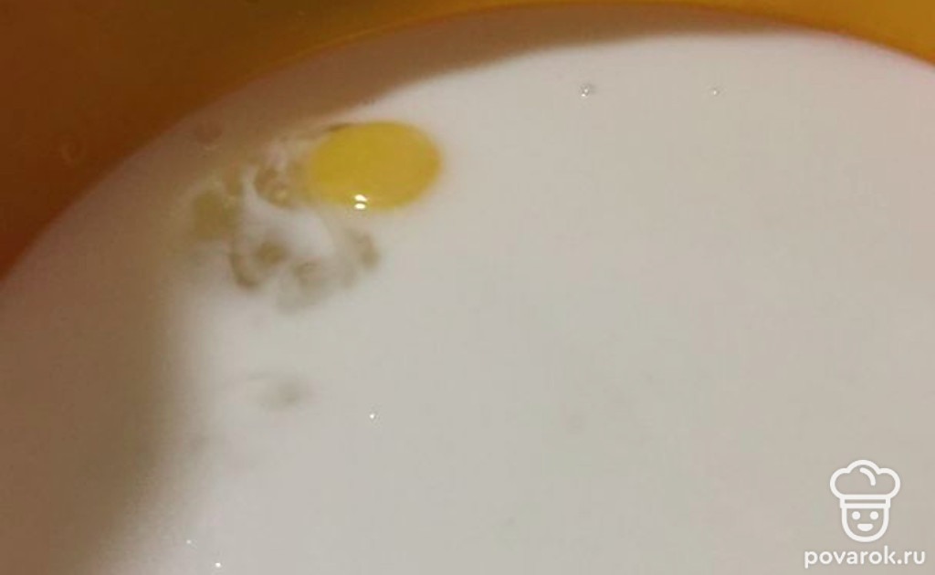 В первую посуду с молоком и дрожжами добавляем одно яйцо.