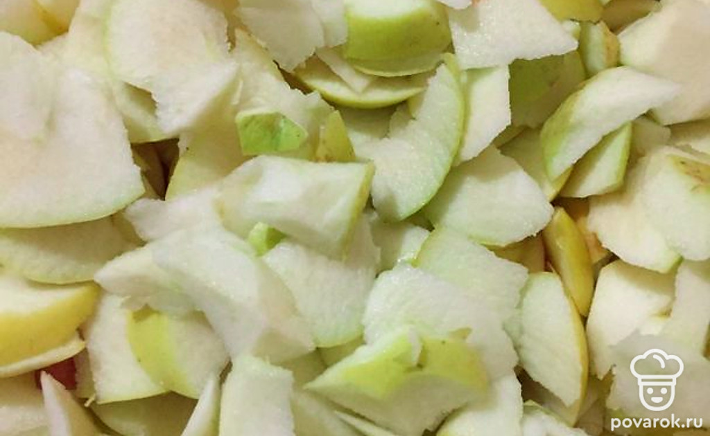 Нарезаем наши яблочки, у меня их 10 штук, но они были мелкие, все зависит от ваших предпочтений и вкусов, можно побольше, можно поменьше, по желанию.
