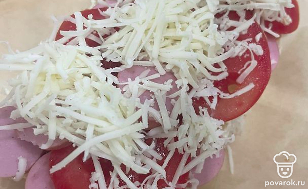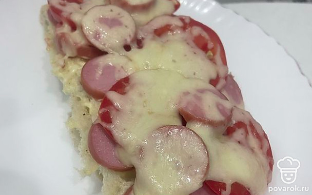 Яркое блюдо, которое очень просто готовится. Горячий тянущийся сыр покрывает сосиски.