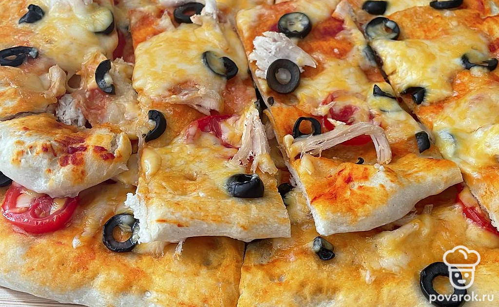 Домашняя пицца на дрожжевом тесте длительного брожения.