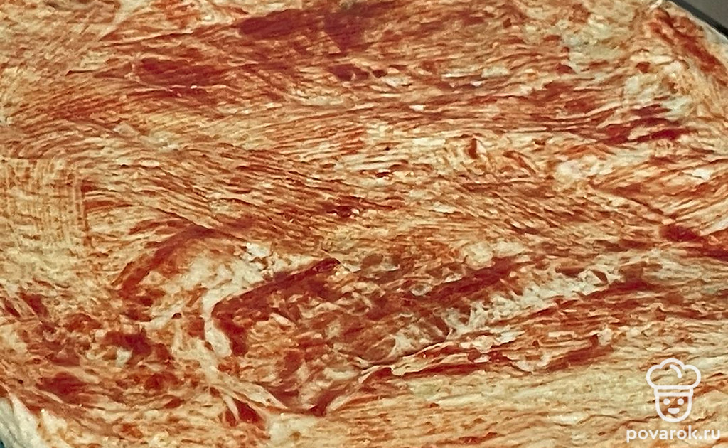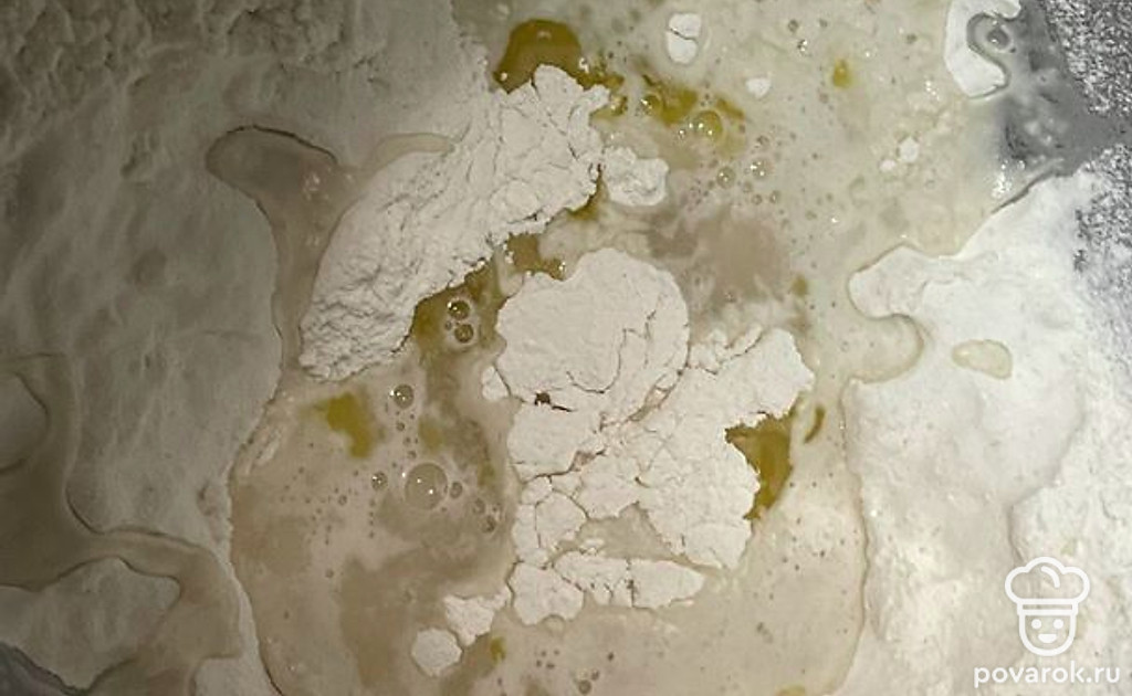 Добавьте соль и замесите тесто. Тесто накройте пищевой пленкой и уберите в холодильник на ночь.