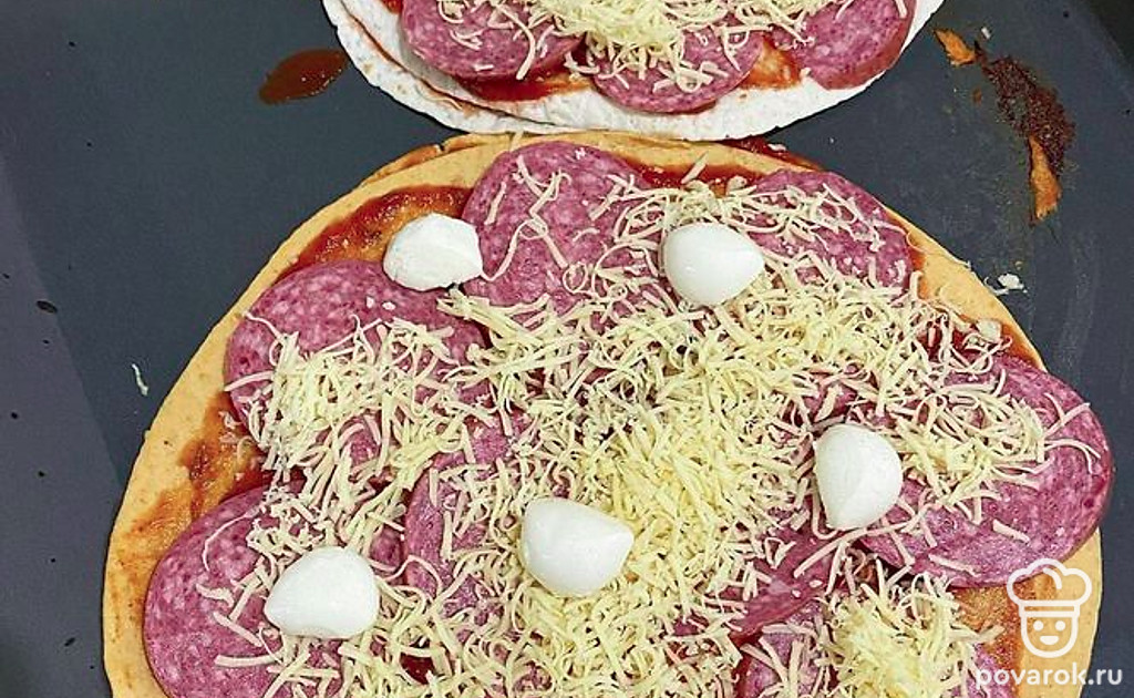 Посыпаем сыром, кладем моцарелу и отправляем в духовку разогретую до 200 градусов на 15 минут.