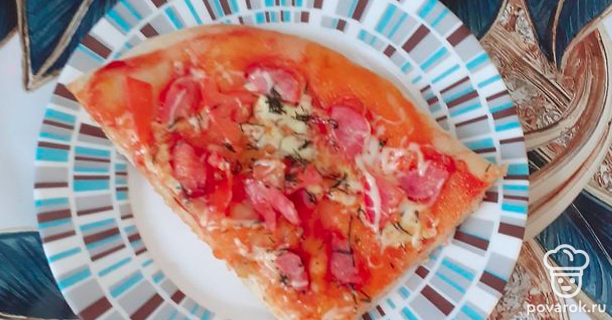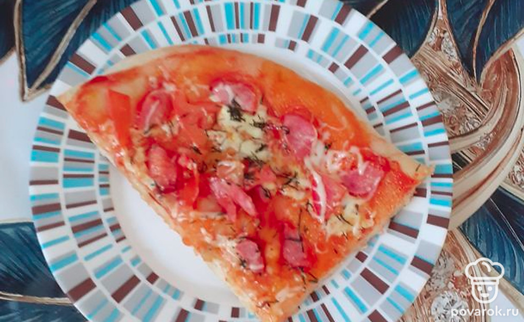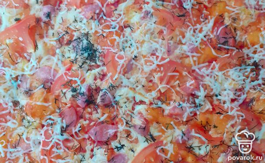 Когда пицца приготовится, вынимаем и посыпаем тертым сыром