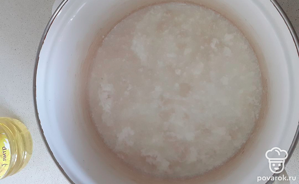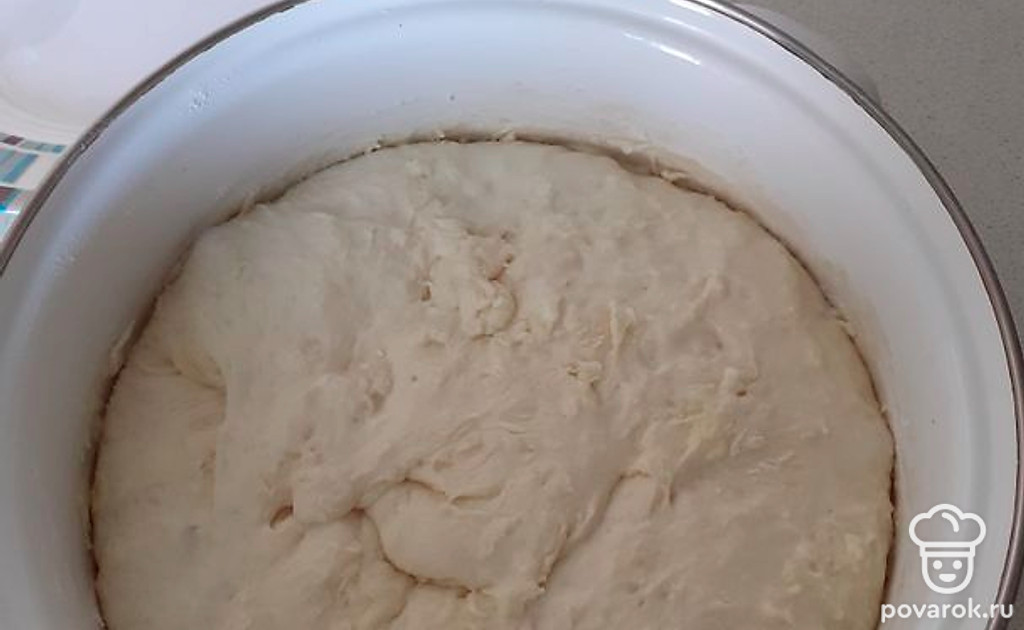 Затем добавляем 3 ст. ложки подсолнечного масла, еще раз замешиваем и оставляем на полчаса в теплом месте.