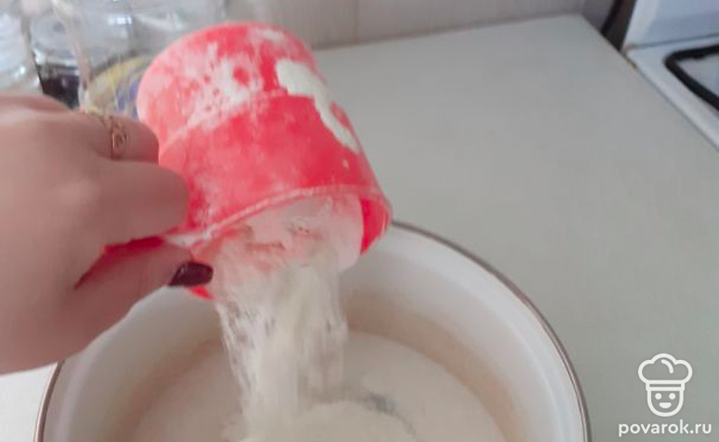Берем кефир, кладём туда соль и сахар, дрожжи и оставляем на пару минут.