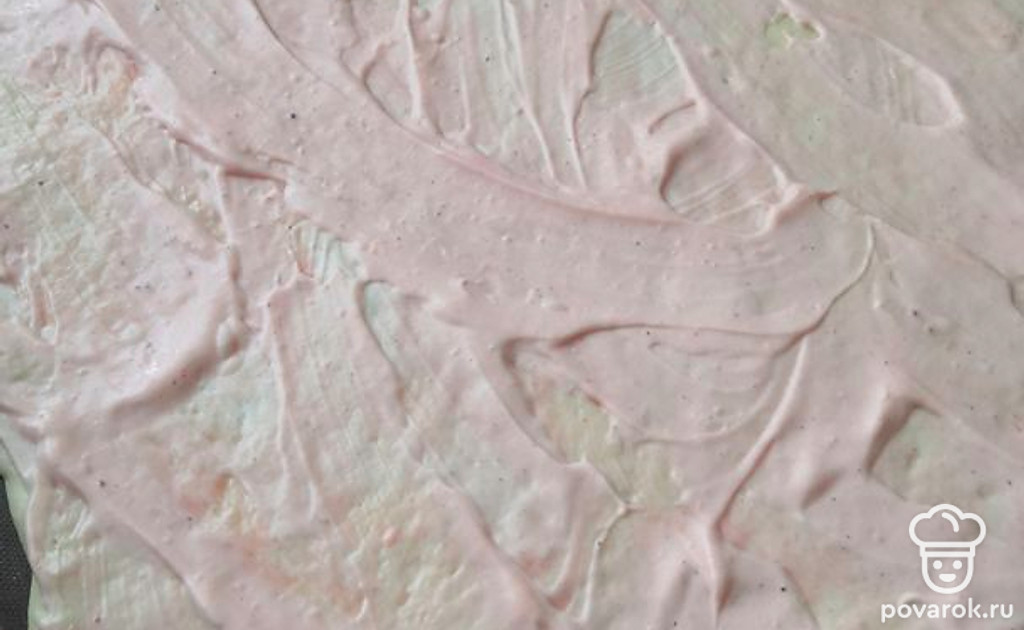 Смешать майонез и кетчуп, выложить на тесто получившийся соус.