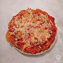 Овощная пицца с колбасой и сыром