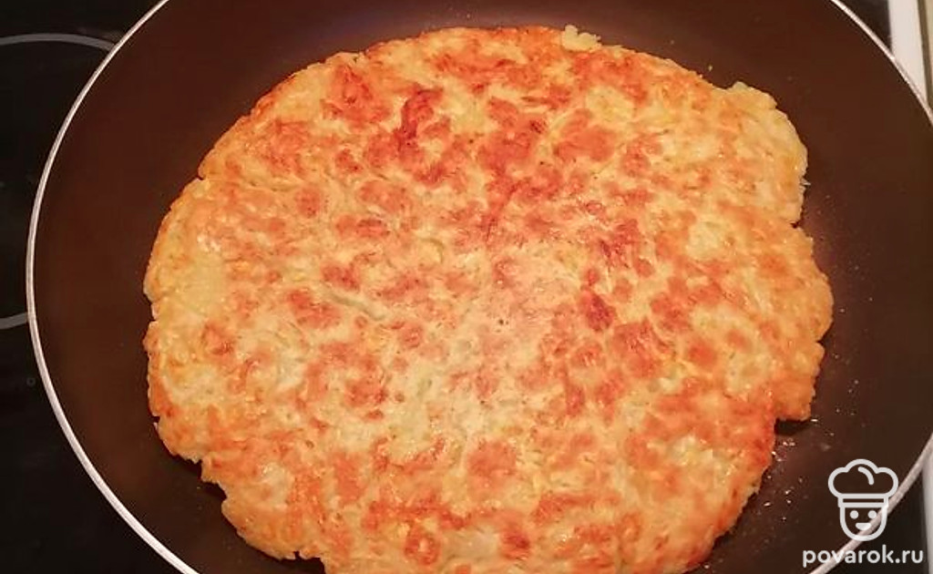 Выложить полученную массу на сковородку, накрыть крышкой. Готовить на небольшом огне 15 минут.