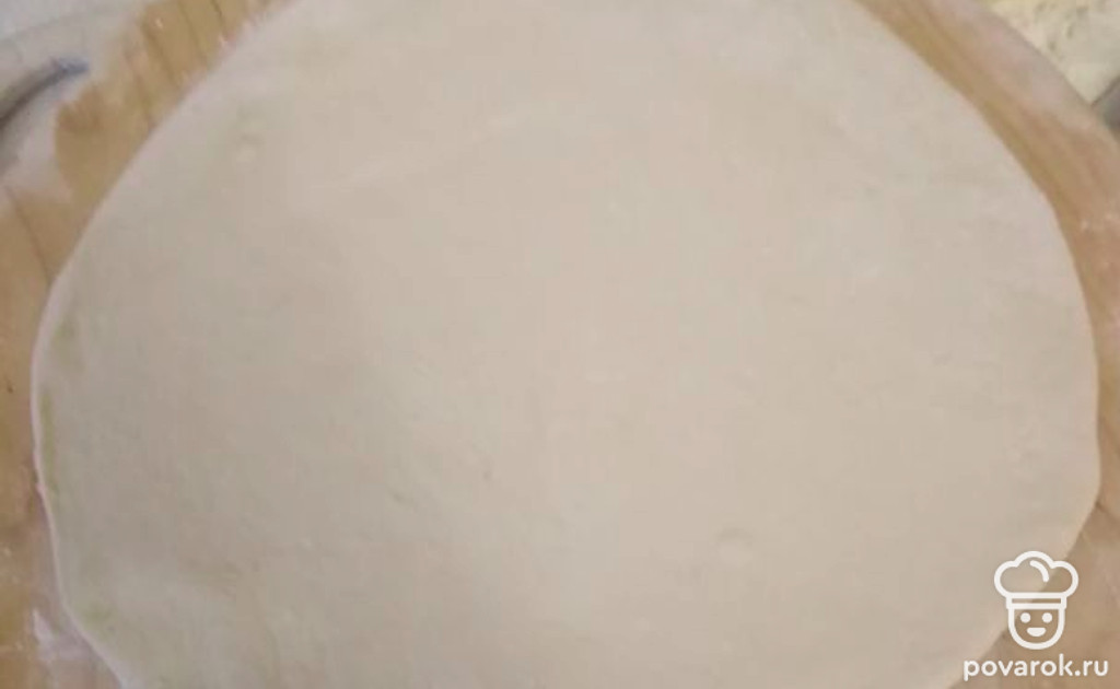 Раскатайте тесто нужного диаметра, в зависимости от размера вашей сковороды.