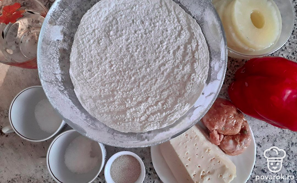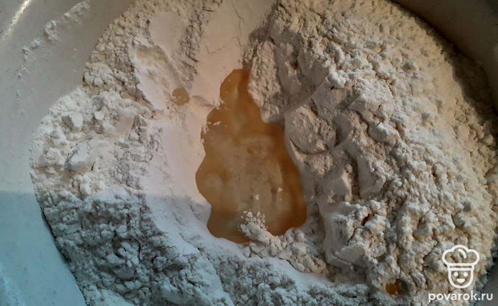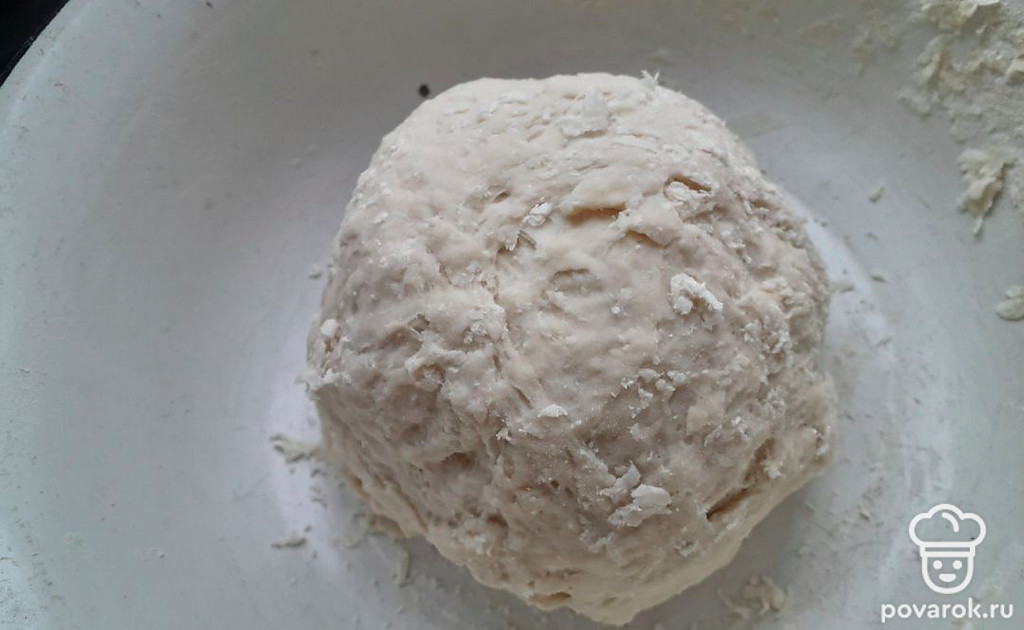 Замесите тесто и оставьте на 1 час в теплом месте, накрыв полотенцем или плёнкой.