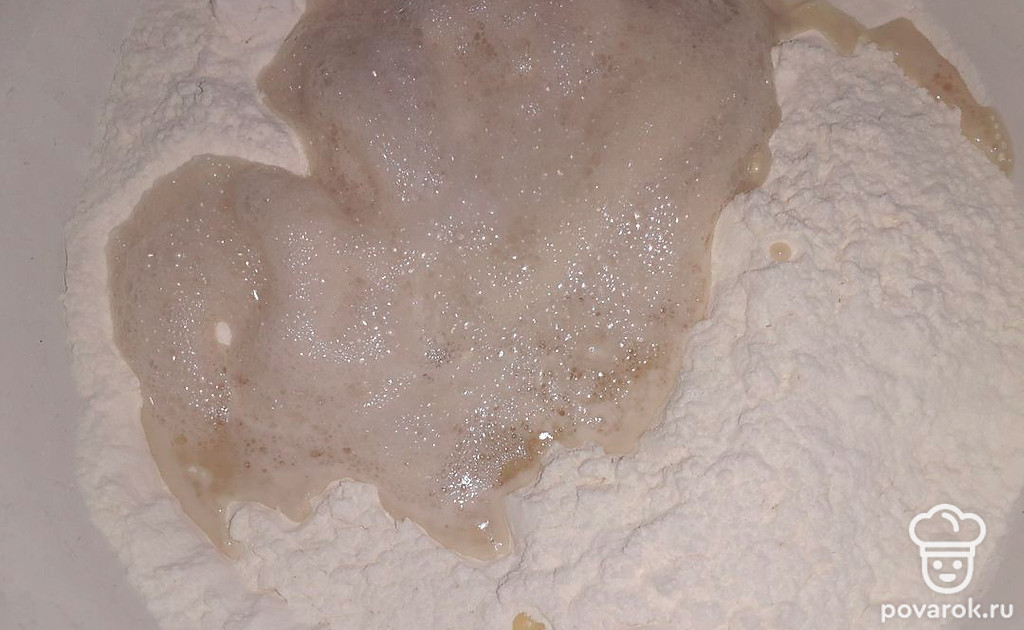 Дрожжи с сахаром развести в тёплой воде и оставить на 15 минут.