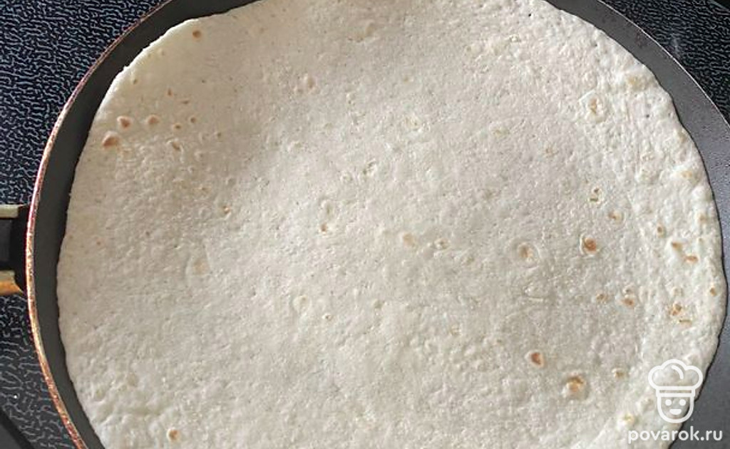 Лаваш выложите на сковородку. Включите маленький огонь.