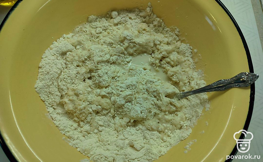 Замесите тесто. Сформируйте колобок и накройте полотенцем. Уберите на 30 минут в теплое место.