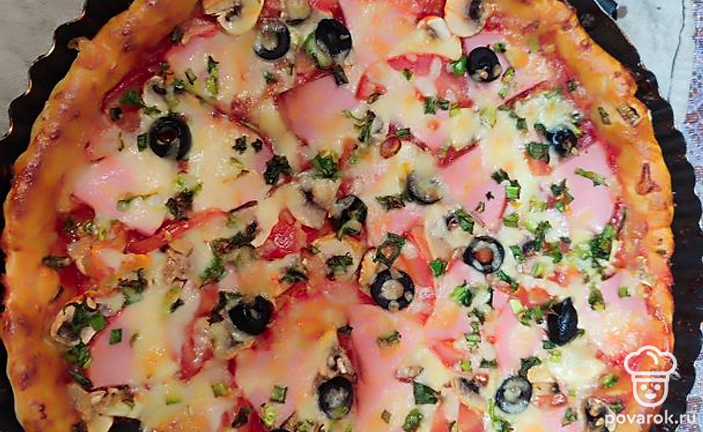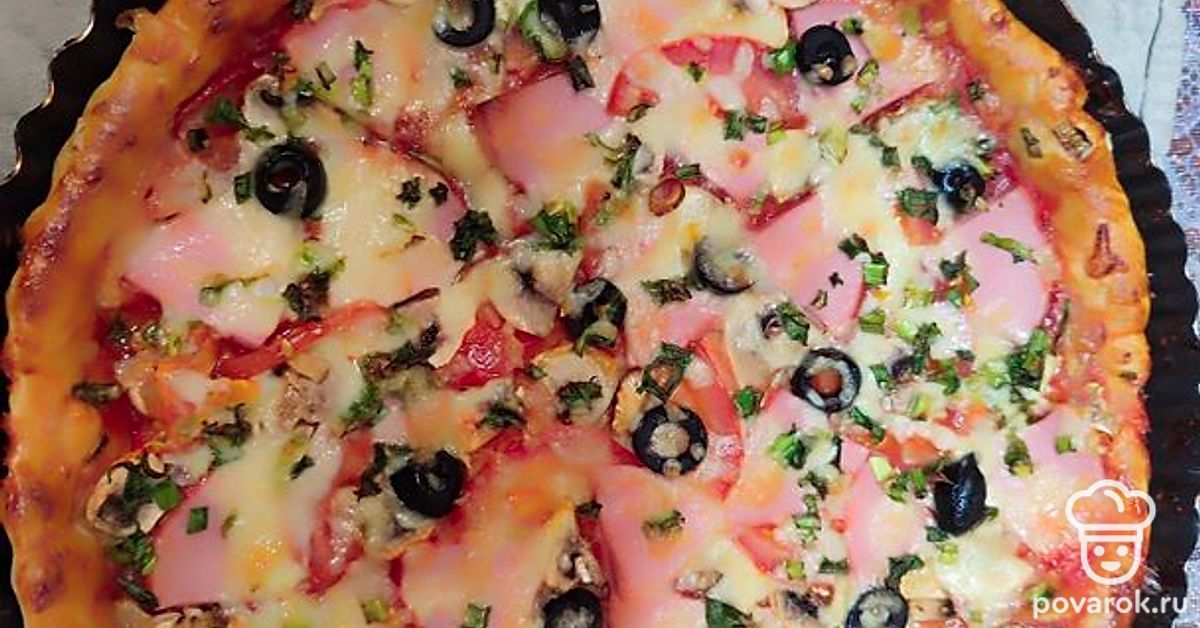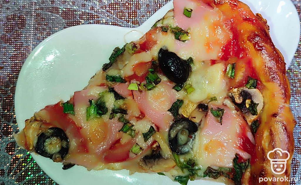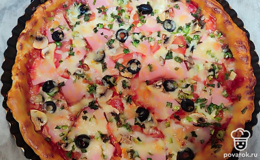 Дети очень любят домашнюю пиццу. Начинка может быть разной, выбирайте на свой вкус. Я готовлю с колбасой, маслинами, помидорами и грибами. Дайте разгуляться вашей фантазии.