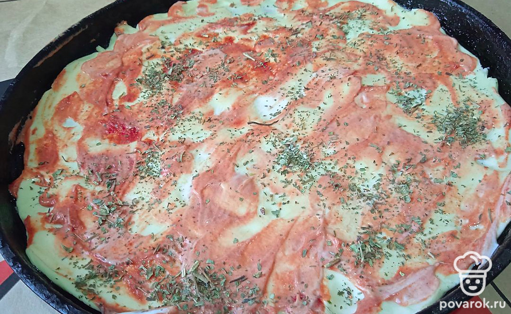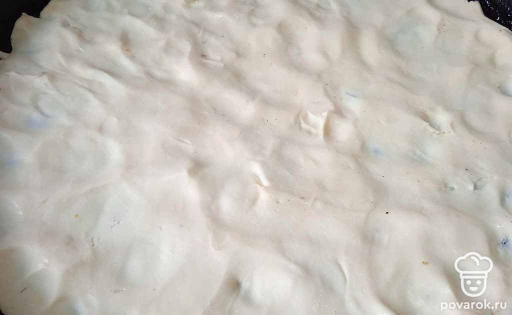 Тесто расскатайте. Положите в смазанную оливковым маслом форму.