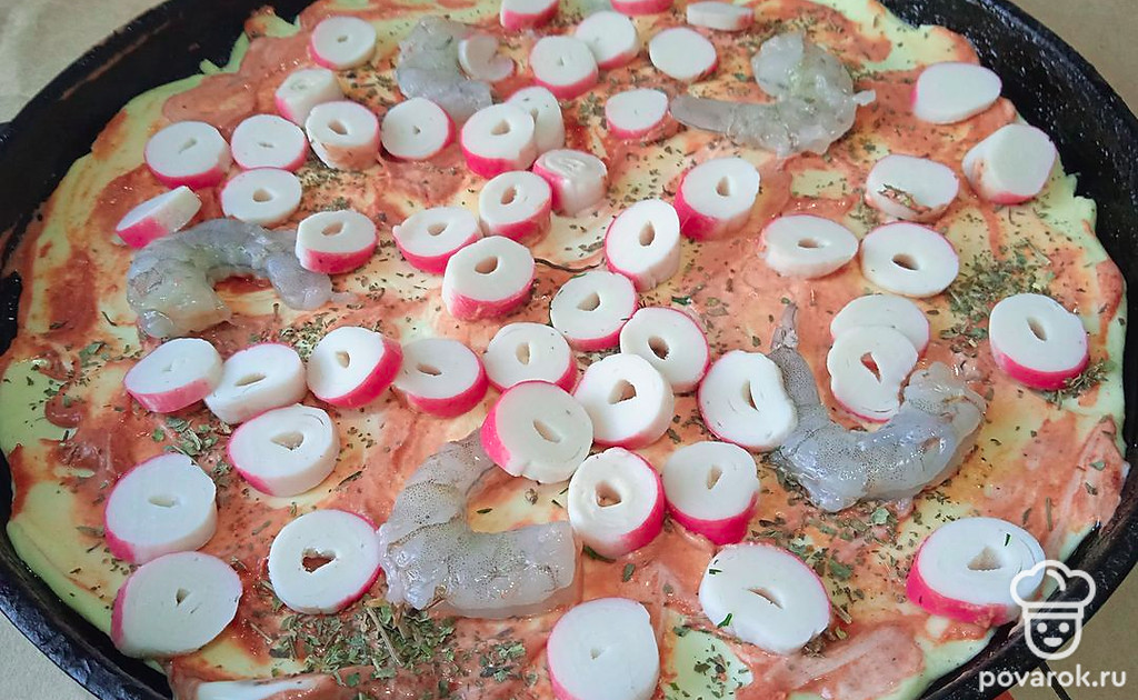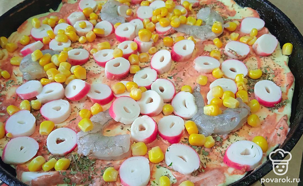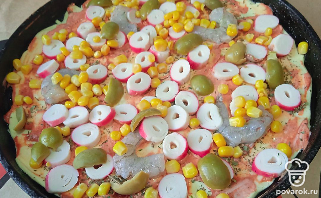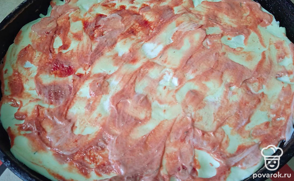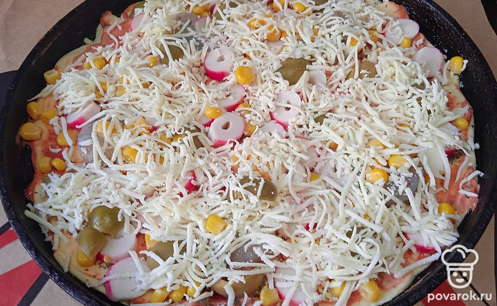 Посыпьте тертой моцареллой. Поставьте в разогретую духовку.