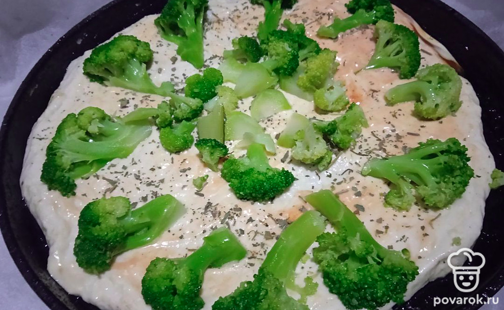 Выложите брокколи.
