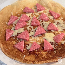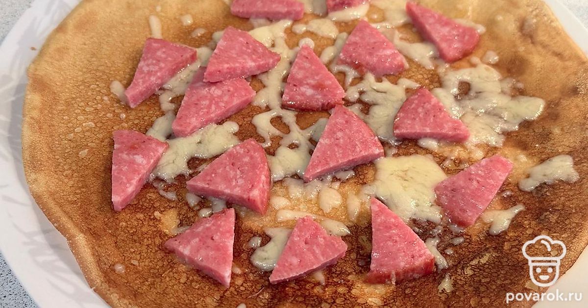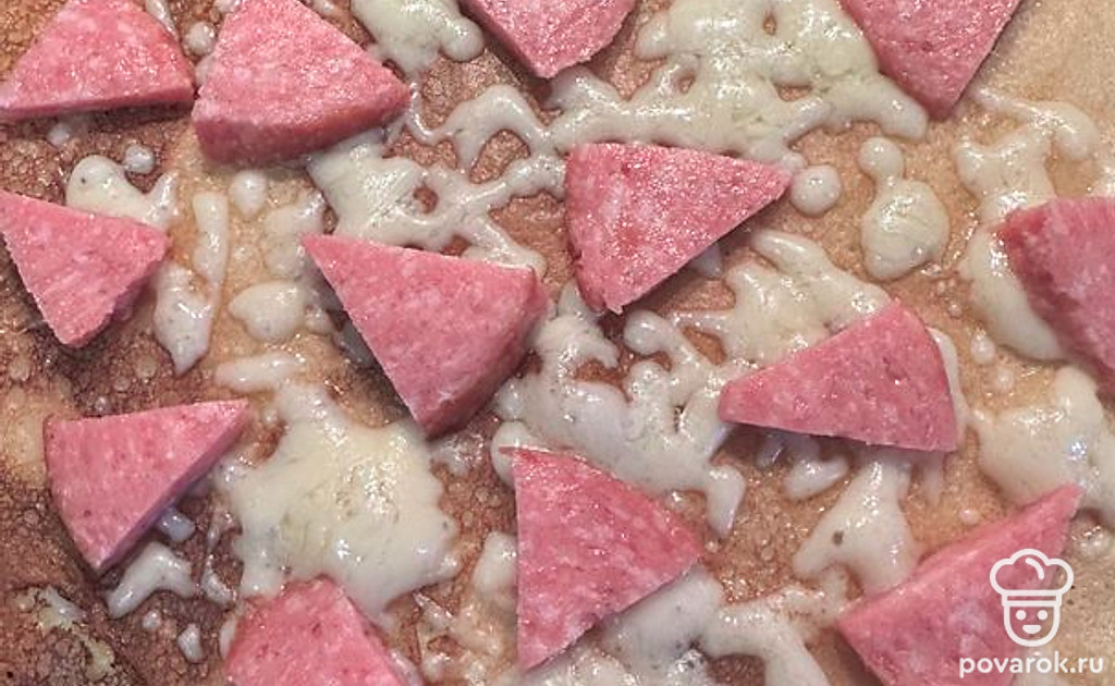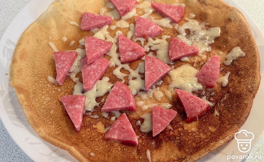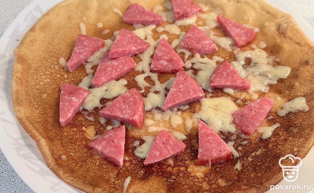 Блинная пицца с сервелатом и голландским сыром