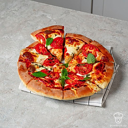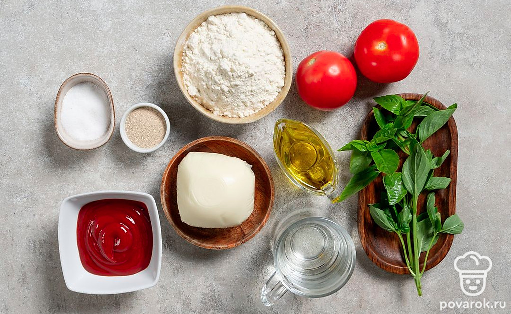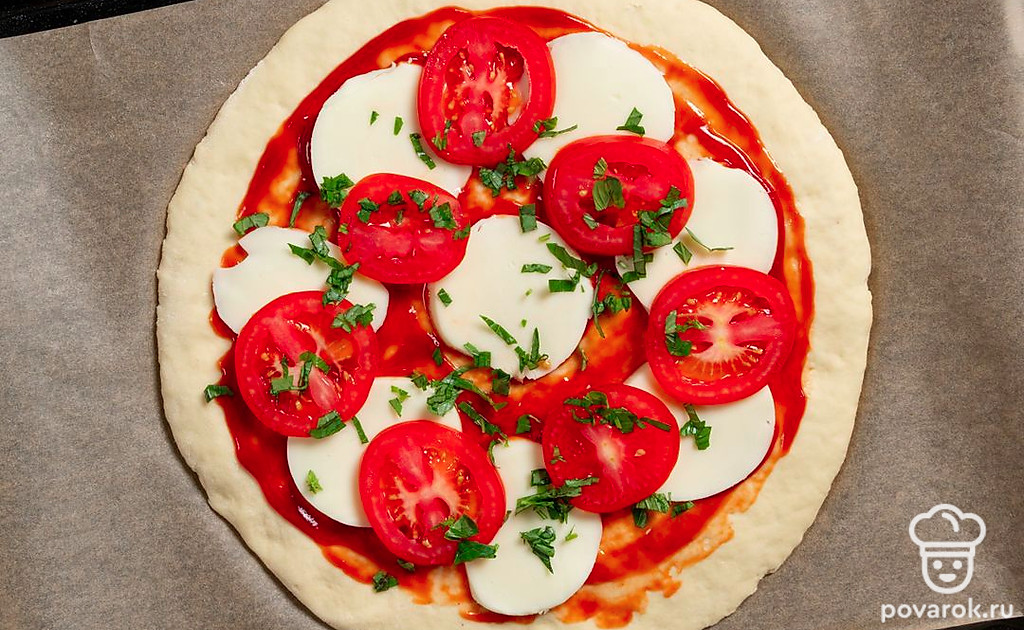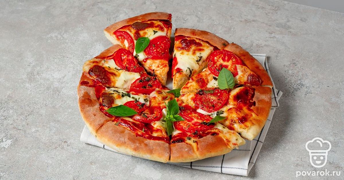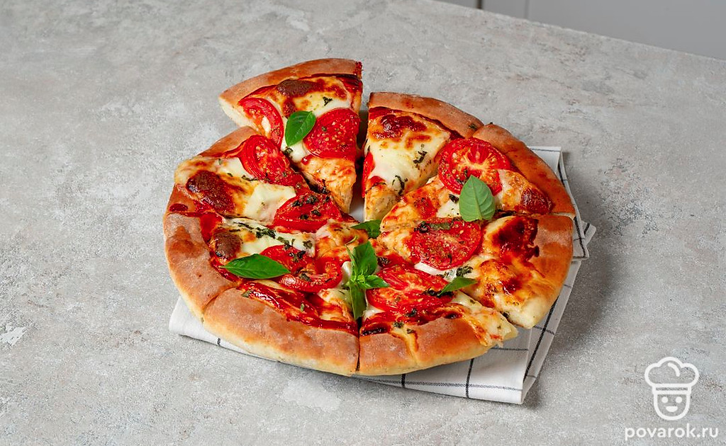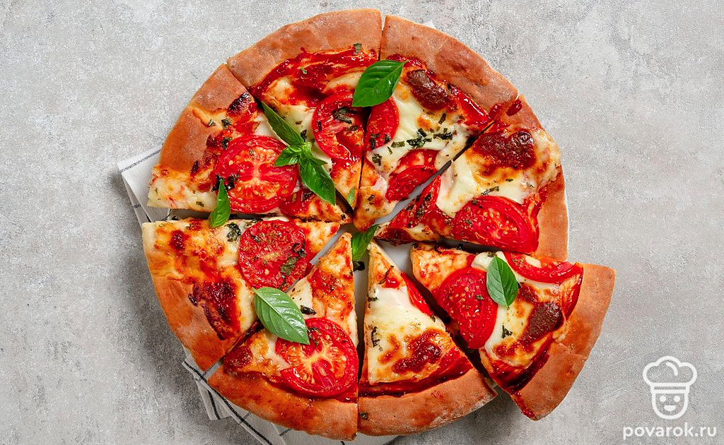 Тесто, томатный соус, моцарелла, помидор и базилик — вот все, что нужно для настоящей итальянской пиццы. Тесто получается тонким, с хрустящей корочкой, а начинка ароматной, нежной и очень вкусной. Томатный соус можно купить готовый или приготовить самостоятельно. Для этого рецепта нужен классический соус без лишних добавок, не заменяйте его ни кетчупом, ни томатной пастой. Из сыров также нужна только моцарелла.