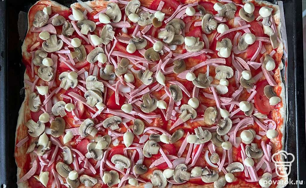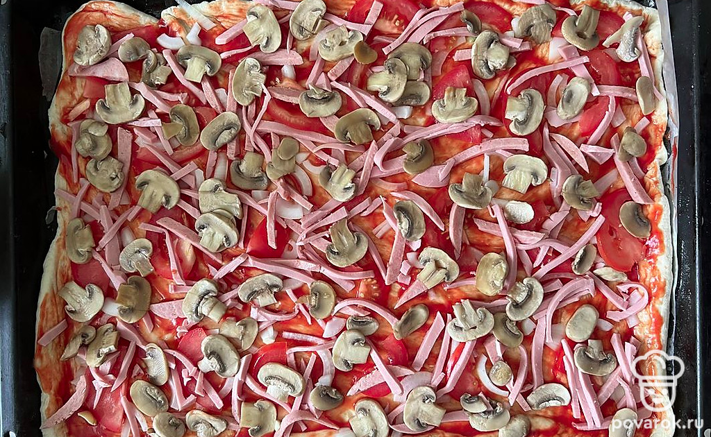 Попробуйте добавить в привычную для вас пиццу разные виды колбасы. Вкус блюда станет более насыщенным и ярким.
