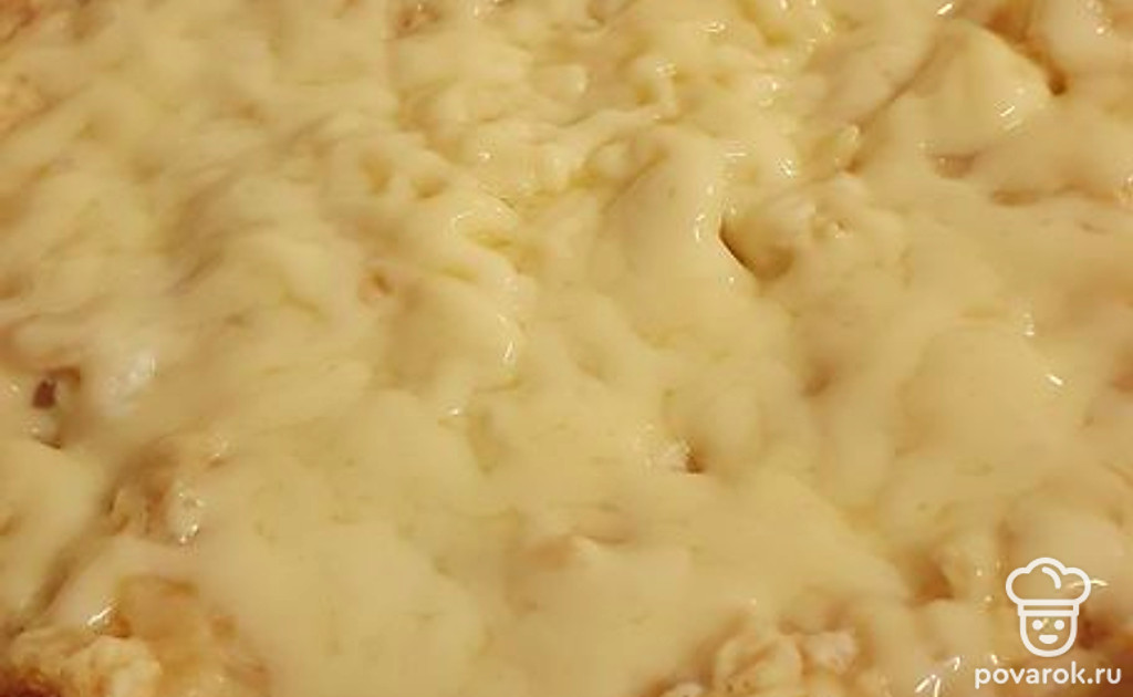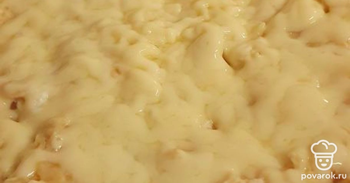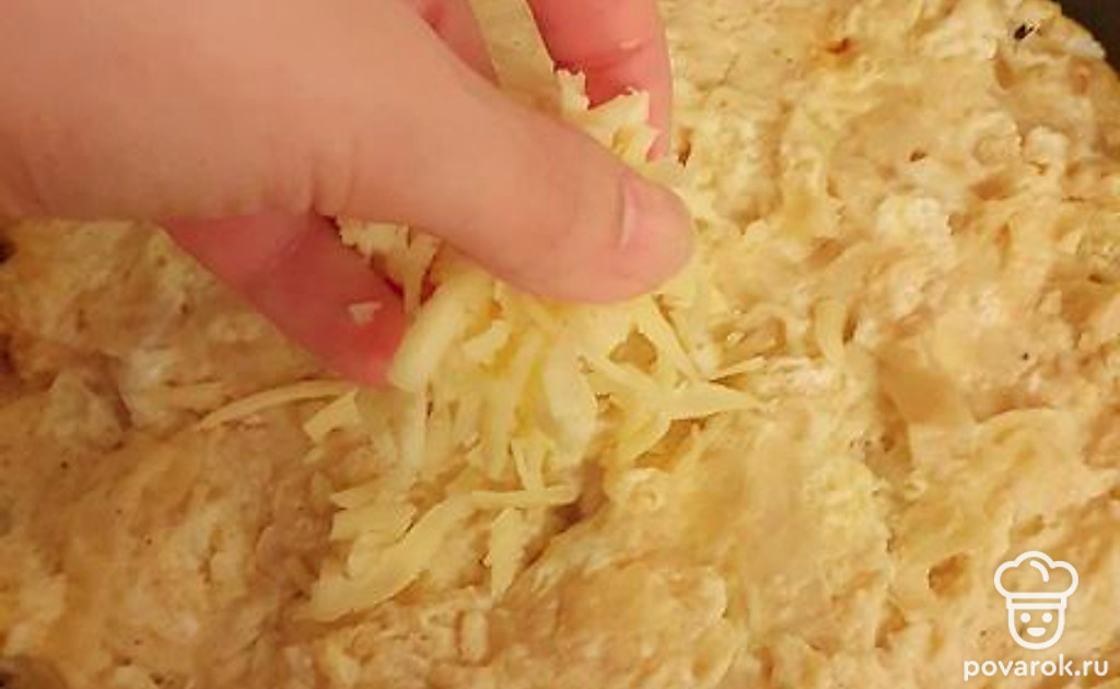 После приготовления основы добавляем тертый сыр сверху и готовим под крышкой еще 2 минуты.