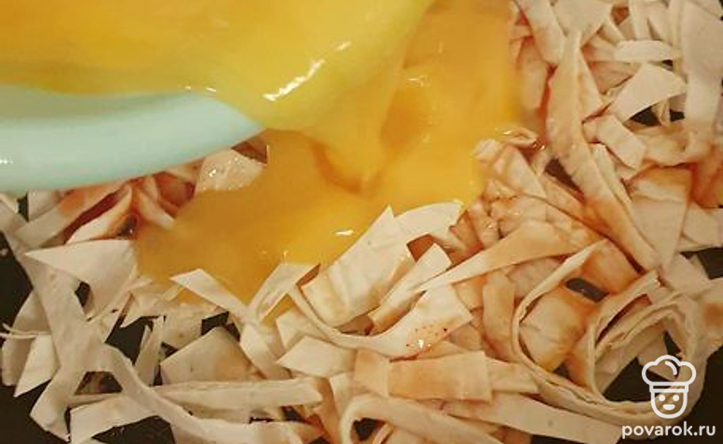 Вливаем в него взбитые яйца и обжариваем под крышкой 5 минут.