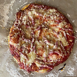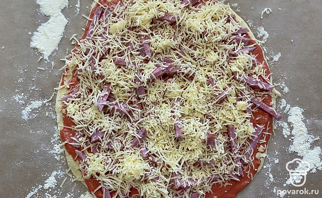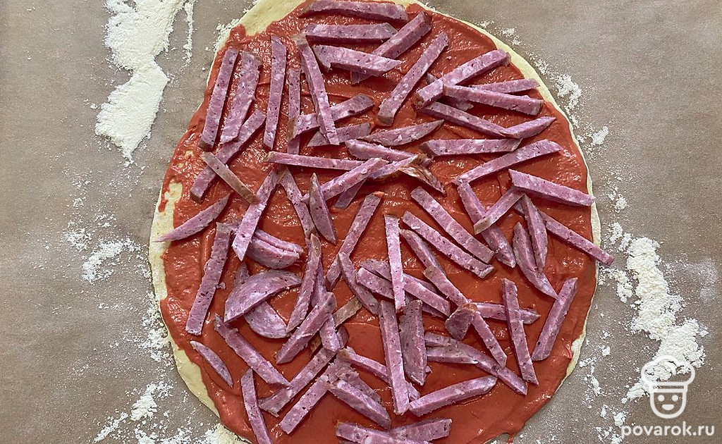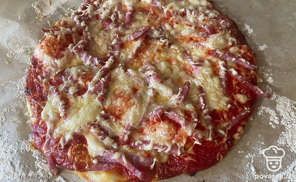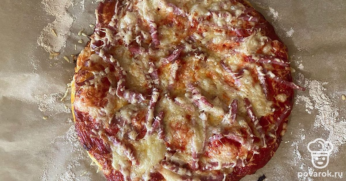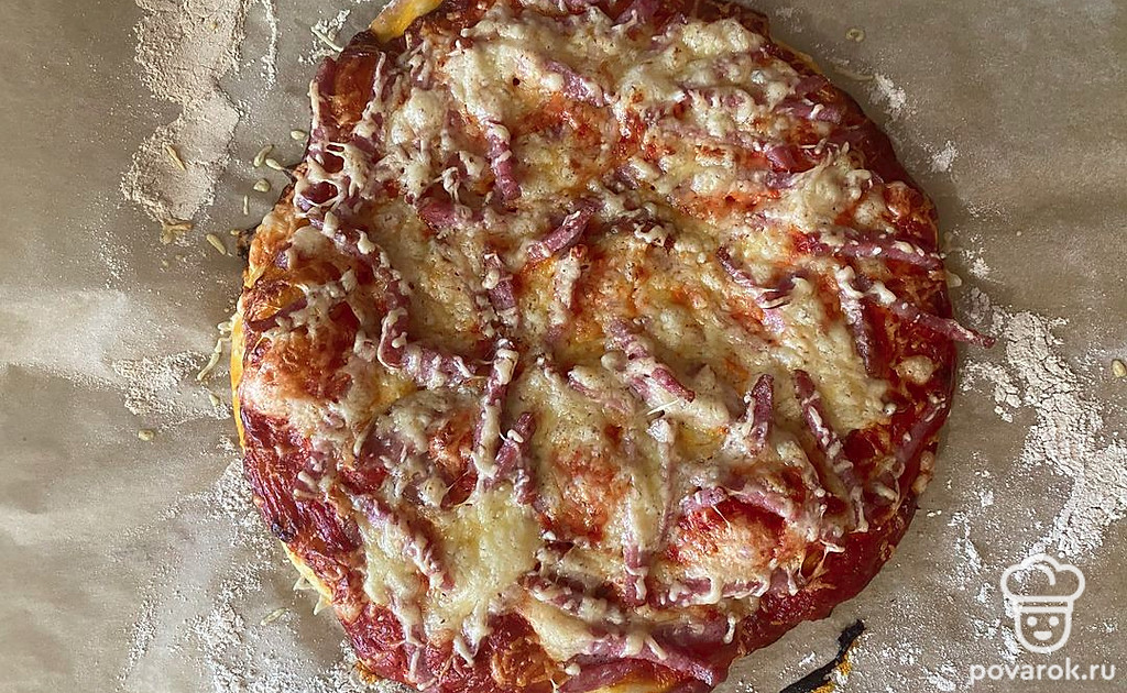 Воздушная пицца с копченой колбасой и хрустящей корочкой из сыра