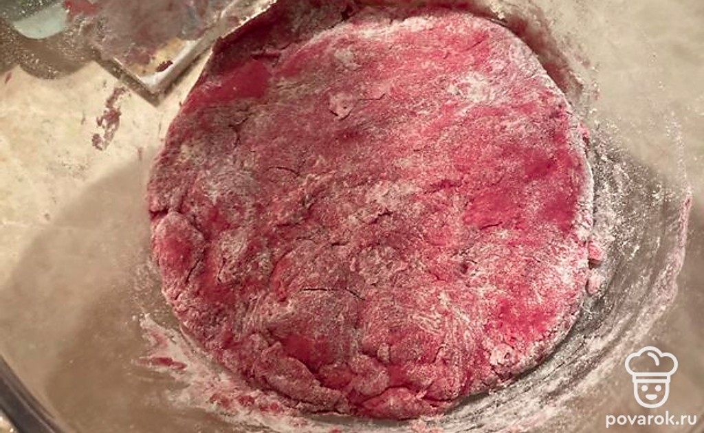 После отваривания свеклы остался свекольный сок, который послужил вдохновением для розового теста.