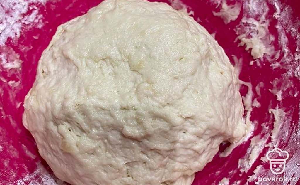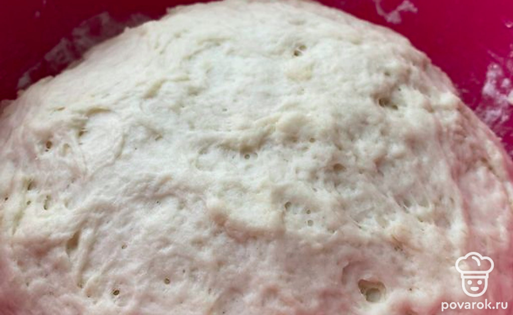 Из муки, молока(тёплого), сухих дрожжей, сахара и щепотки соли замесить тесто, смазать растительным маслом, оставить подходить на полчаса.