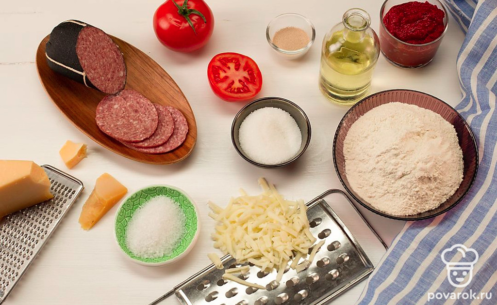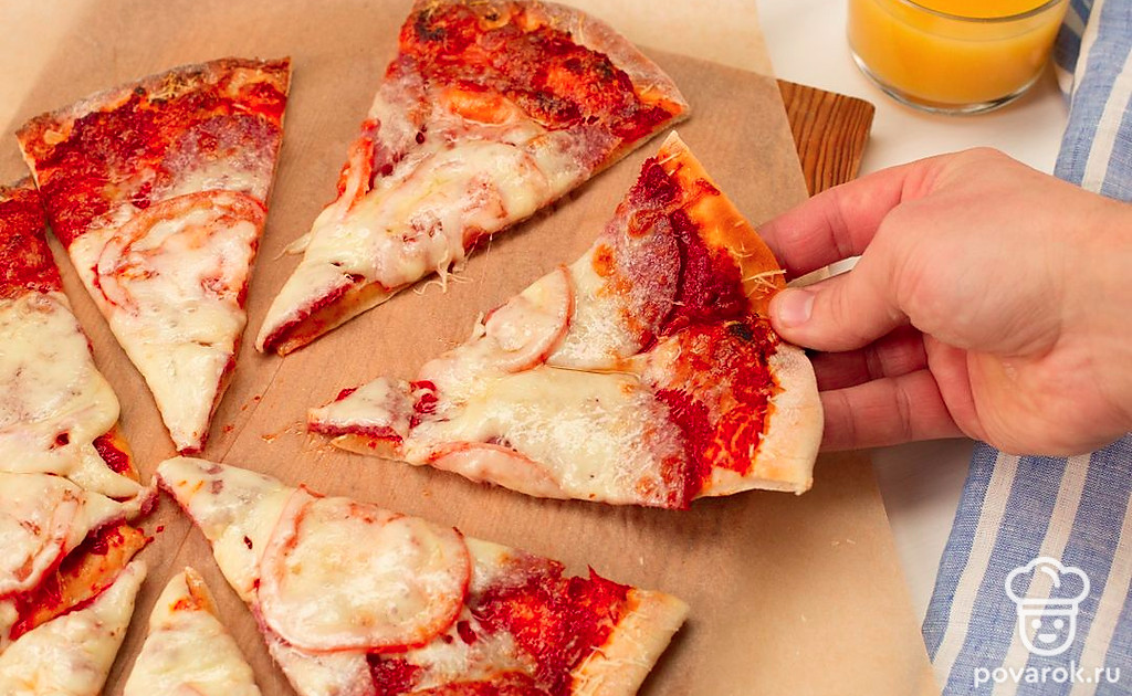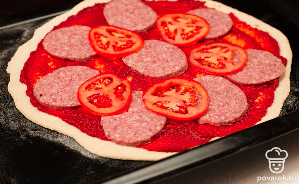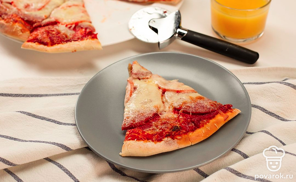 Пицца — блюдо поистине легендарное. С ним связано множество историй, у него есть целый музей и даже духи с ароматом сыра, томата и орегано. В нашей «композиции» будет немного другой состав, но у него тоже безумно аппетитный запах. Домашняя пицца с колбасой, помидорами и сыром получится пышнее и сытнее, чем классическая итальянская.