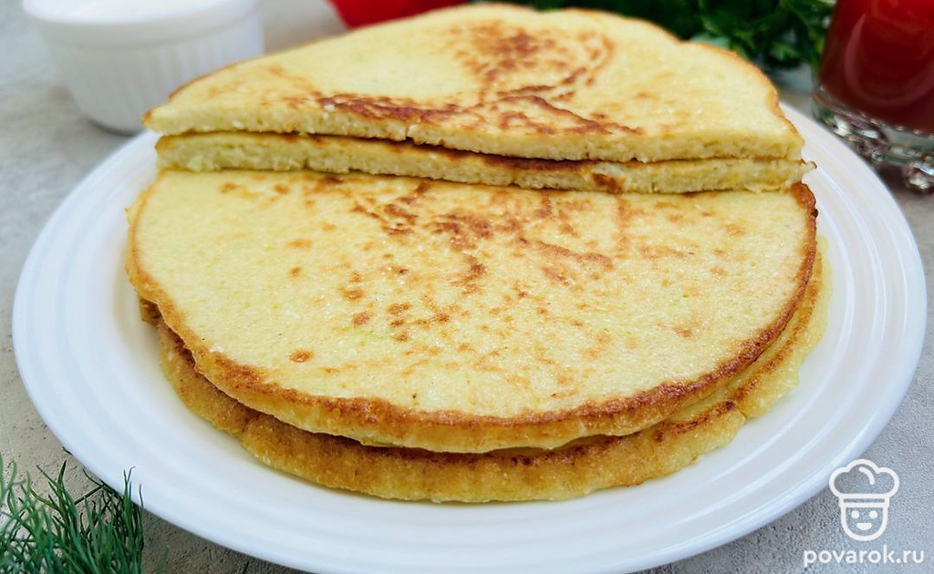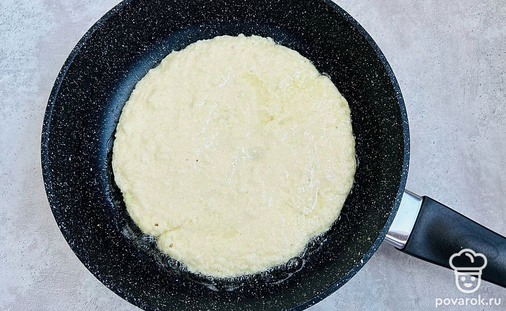 На разогретую сковороду с растительным маслом выложите тесто и распределите по поверхности. Обжарьте на среднем огне до золотистого цвета. Затем переверните и обжарьте с другой стороны.