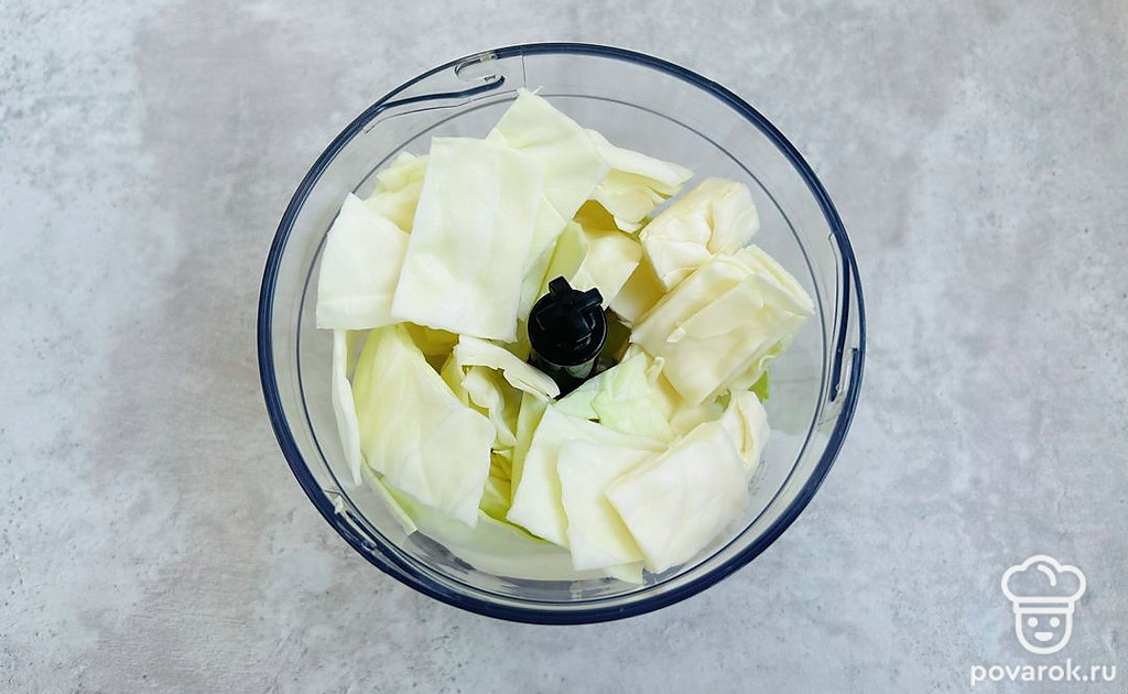 Капусту нарежьте на мелкие кусочки. Измельчите блендером.
