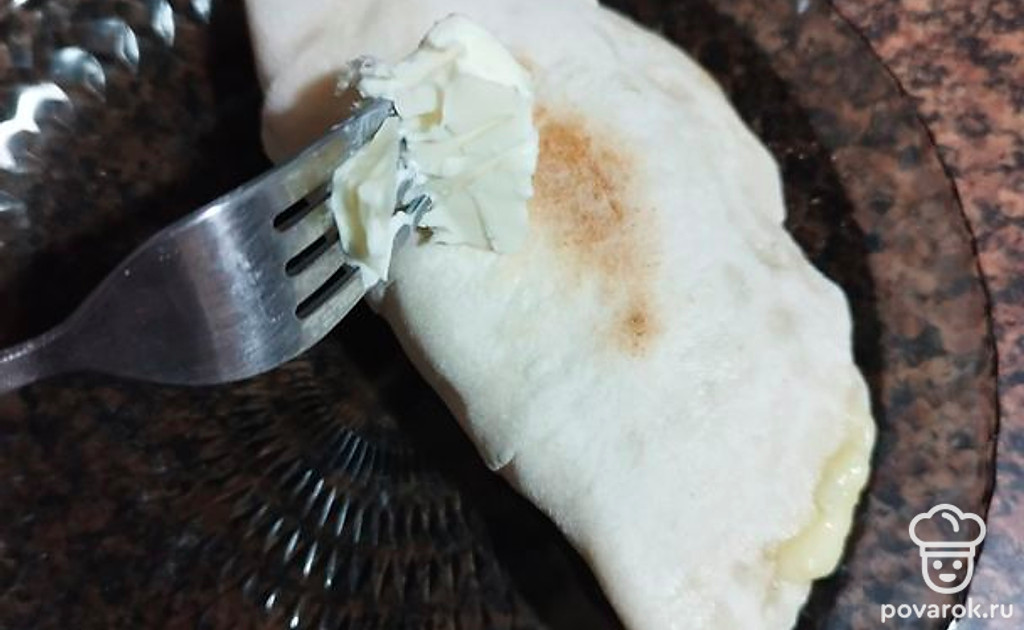 Кутабы смазываем сливочным маслом. Ждем, пока они немного остынут.