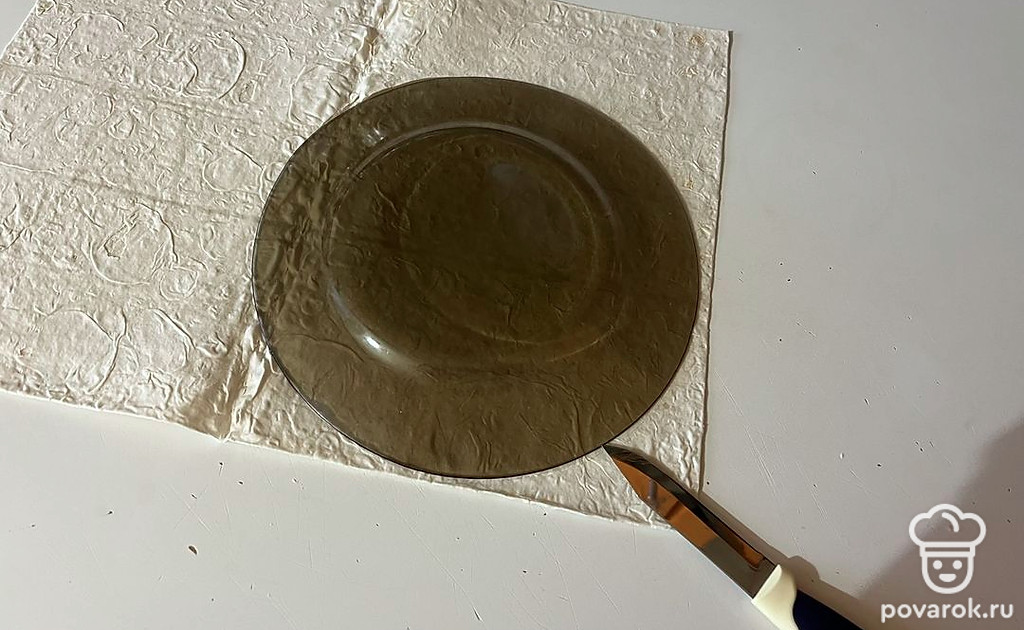 Из лаваша вырежьте круг диаметром 20 сантиметров.