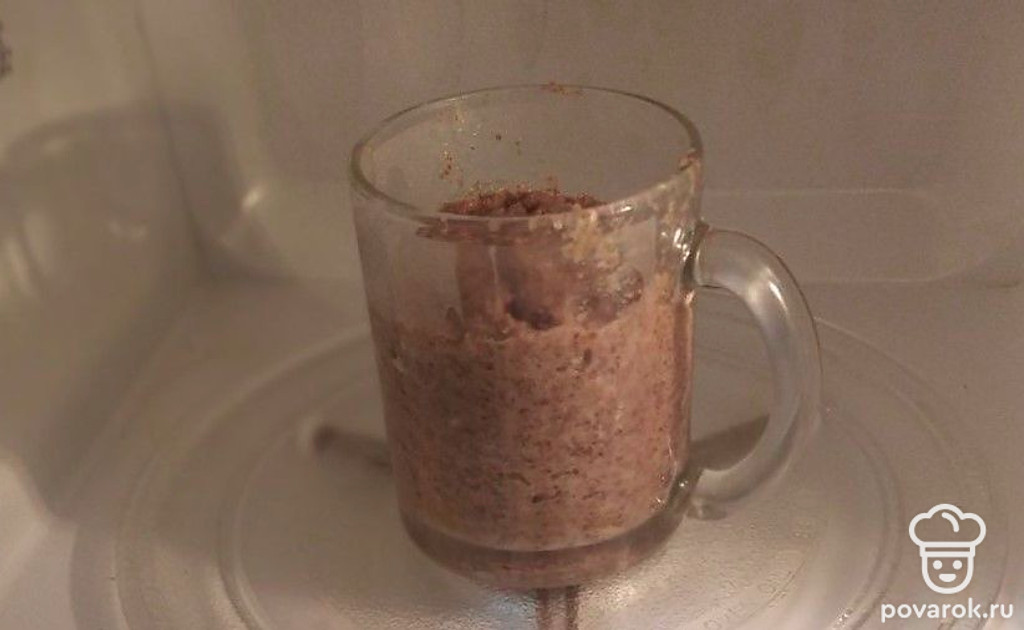 Запекайте полученную смесь в кружке с помощью микроволновки 2 минуты.