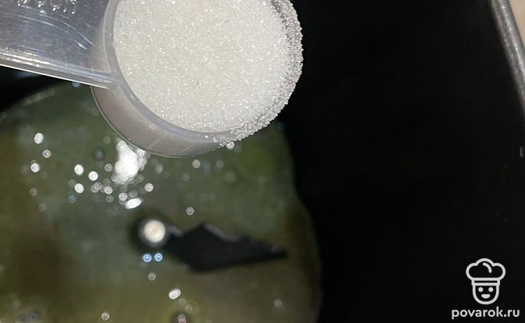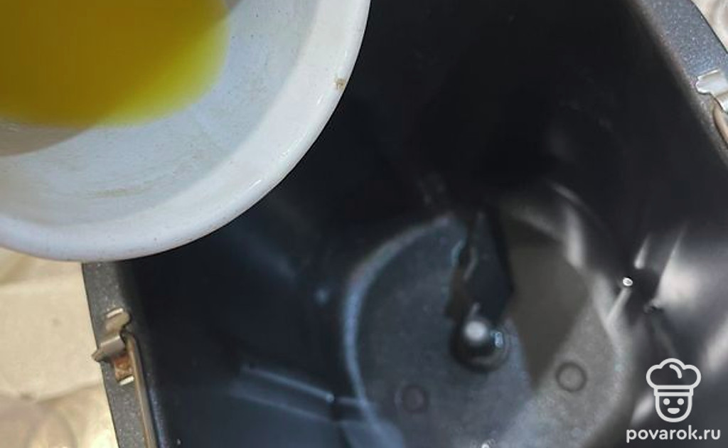 В форму для выпечки вливаем воду. Маргарин греем в микроволновой печи и добавляем к воде.