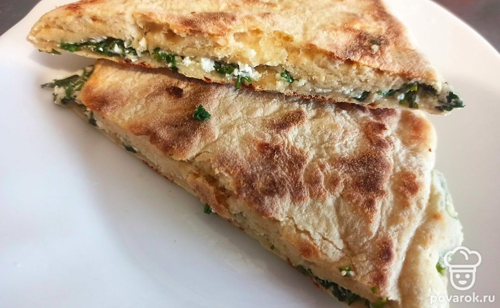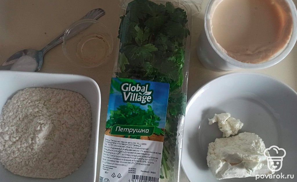 Лепешка с творогом и петрушкой на ряженке