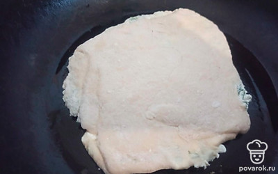 Выложите лепешку на горячую сковороду. Обжарьте с подсолнечным маслом, с двух сторон по 3-4 минуты.