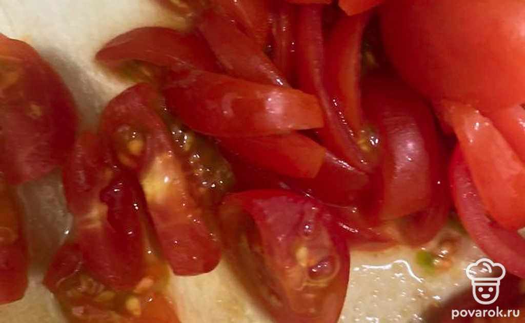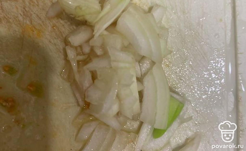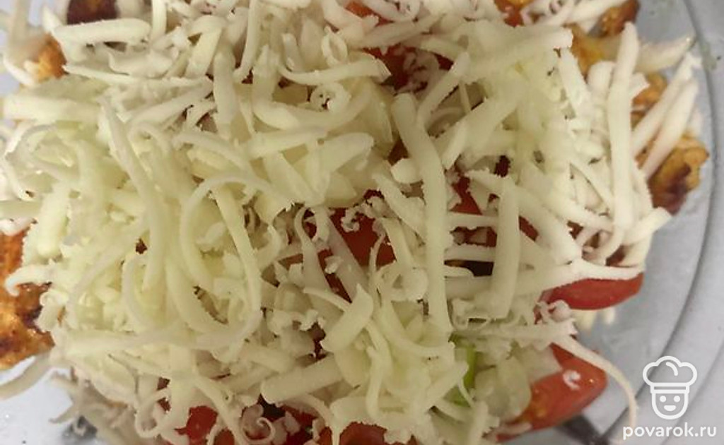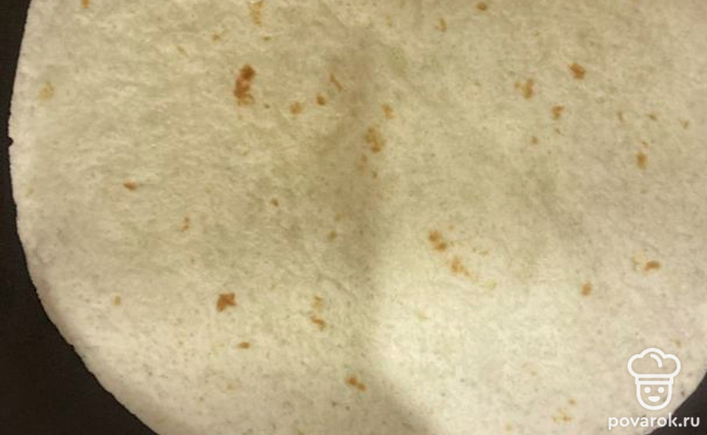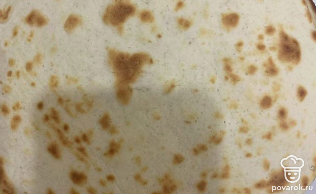 Все хорошо перемешиваем и выкладываем на лепешку.