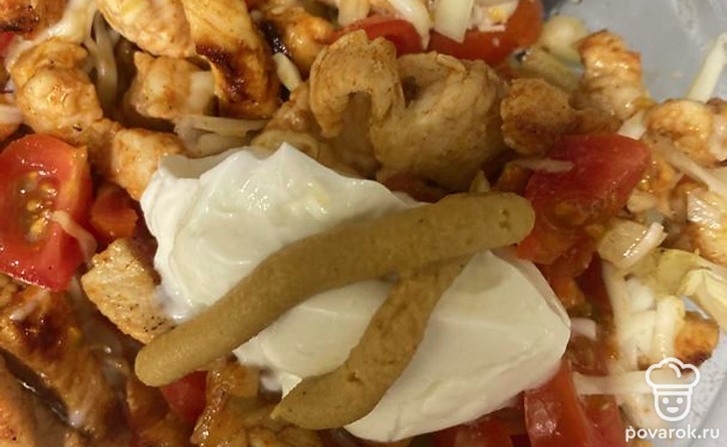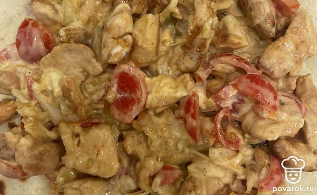 Очень вкусный и интересный рецепт лепешки с курицей и овощами.