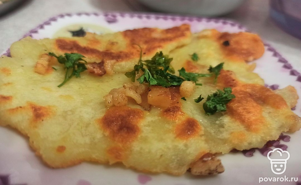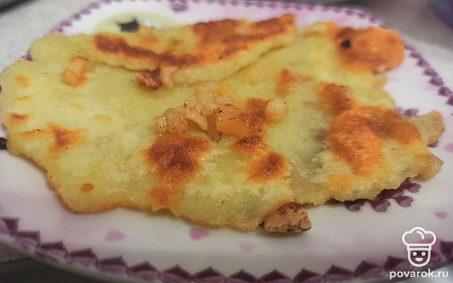 Выложите картофельную массу на сковороду и обжарьте с двух сторон.