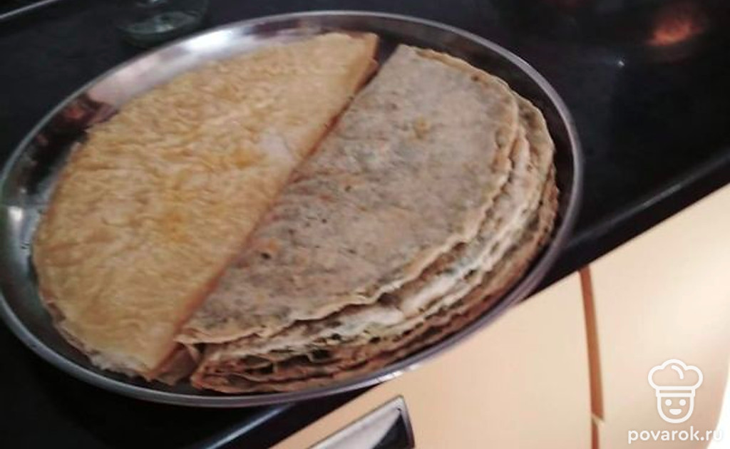 Тесто раскатаем в такой тонкий пласт как на фото. И жарим сложив пополам на сухой сковороде. Получаются лаваши тонкие. Готовые лаваши начиняем рисовой кашой. Чуду готовы.