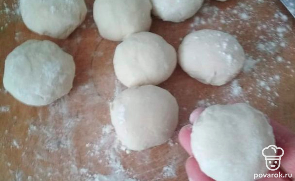 Тесто делим на ровные части, делаем такие шарики. Оставляем тесто. Делаем кашу из риса и молока. Готовим пока рис не станет разваренным.